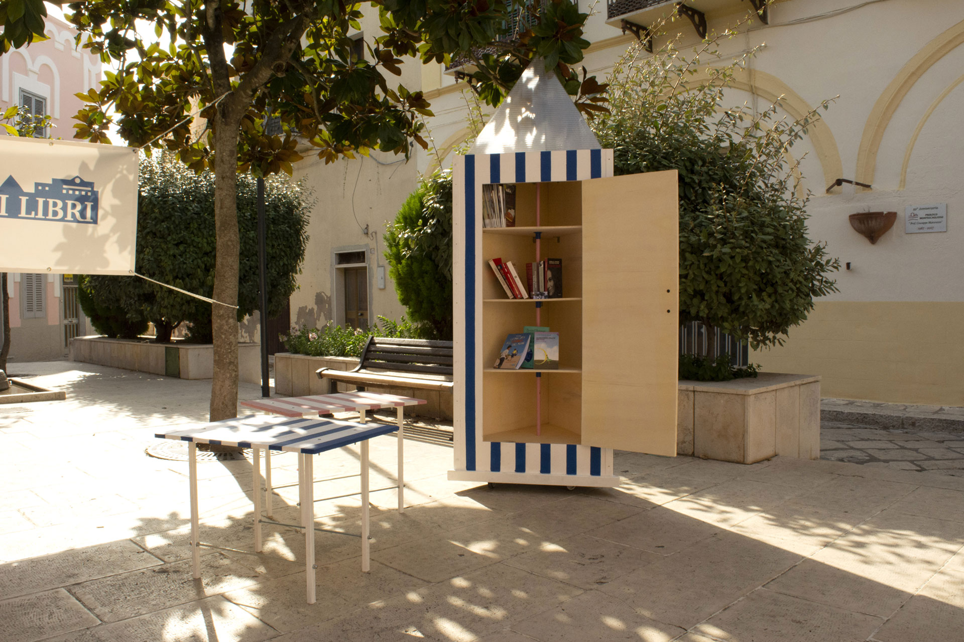 L’edizione 2021, dedicata al tema della rinascita post pandemia, vede per la prima volta l’installazione di piccole stazioni di bookcrossing permanenti, che possano stimolare lo scambio culturale anche al di fuori della manifestazione stessa. Sono due gli elementi che configurano lo spazio lettura in maniera sempre diversa. Il totem, elemento alto che richiama la morfologia dei campanili e delle torri del borgo, è composto da moduli sovrapponibili che svolgono la funzione di raccolta dei volumi. Il salotto, invece, è una seduta scomponibile e riconfigurabile che permette di leggere all’interno dello spazio pubblico.