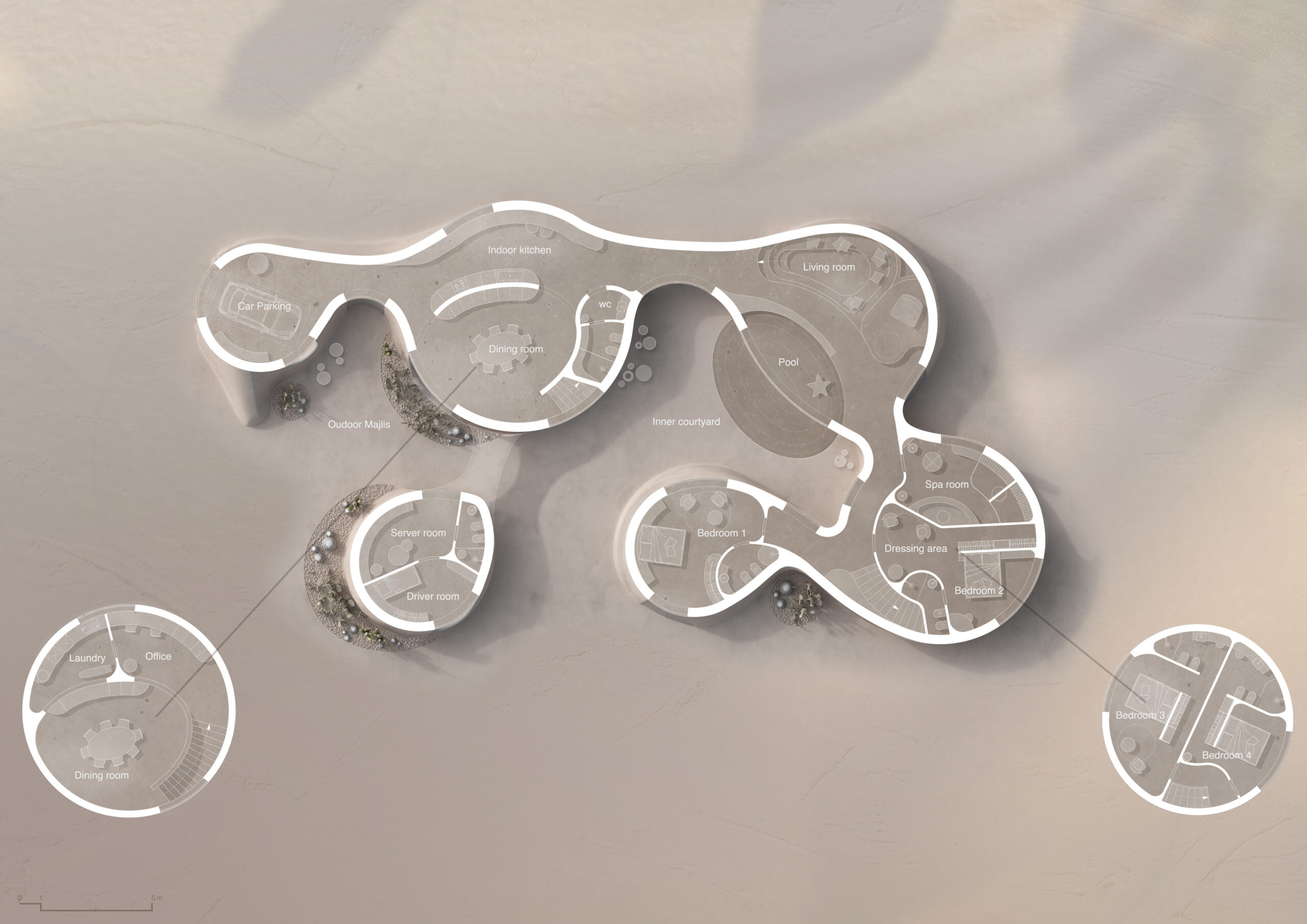 Pensare alla casa del futuro per una città come Dubai significa porsi molte domande basilari, considerando i cambiamenti che le nostre città e la nostra terra stanno vivendo. La natura avrà gli stessi colori? La specie umana avrà le stesse fattezze di ora? Il suolo terrestre sarà ancora prevalentemente fertile? In questo contesto fatto di incertezze, le case in cui l’essere umano abiterà come dovranno essere per rispecchiare lo stile di vita del futuro?