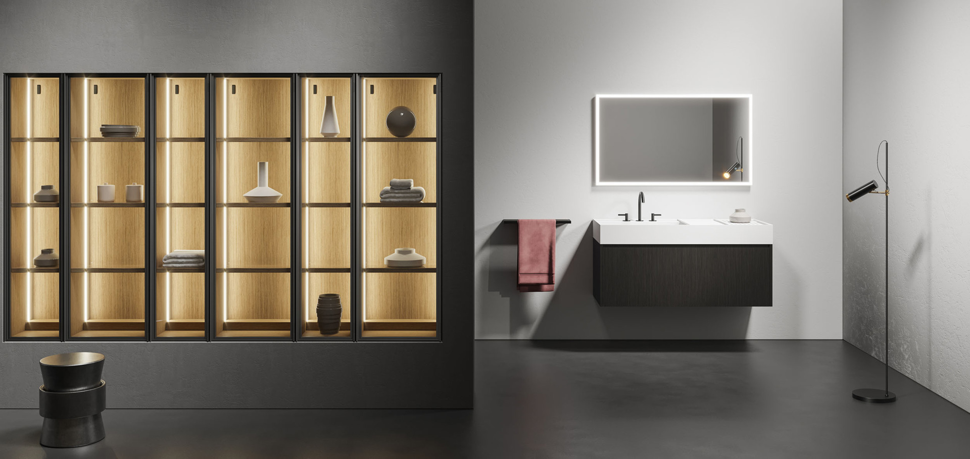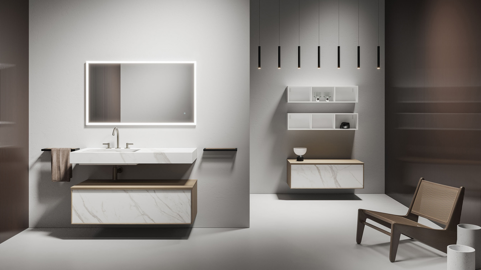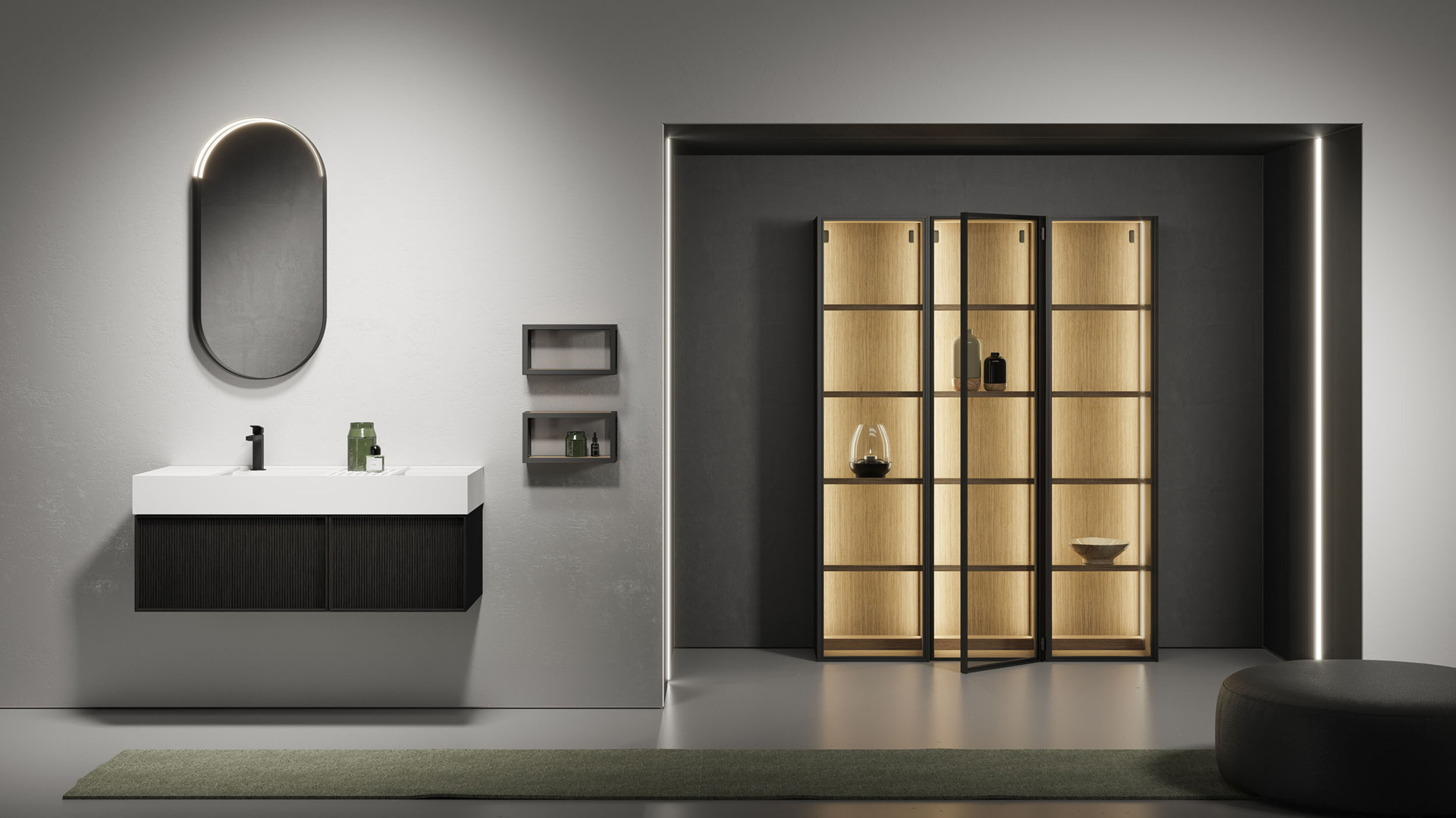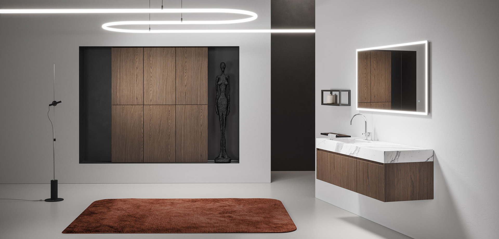 La luce ha sempre avuto un significato simbolico e filosofico, rappresentando la fonte dell’illuminazione fisica e metafisica e simboleggiando l’etere, il quinto elemento che circonda tutti i corpi. La nuova collezione di Mobiltesino va oltre la luce come conoscenza e offre qualcosa di superiore e trascendente. Superluce è un viaggio attraverso un labirinto di spazi che interpretano la meticolosa ricerca per la qualità dei materiali migliori e delle finiture migliori. La luce zenitale illumina questa architettura in maniera uniforme, sono le pareti e le contropareti che lo organizzano a disegnarne ombre, prospettive e punti di vista sempre diversi. Le ambientazioni non cercano di simulare un ambiente domestico con uno stile preimpostato, ma uno spazio semplice, minimale in cui il cliente possa interpretare il mobile che vede, nello spazio che ha. Sfogliare il catalogo della nuova collezione di Mobiltesino diventa come un’esperienza all’interno di un labirinto, riemergono pareti, dettagli di altri ambienti che abbiamo già sfogliato, così da far calare il lettore in uno scenario già vissuto e non distante o irraggiungibile e dove la luce è motore e guida di questo viaggio.