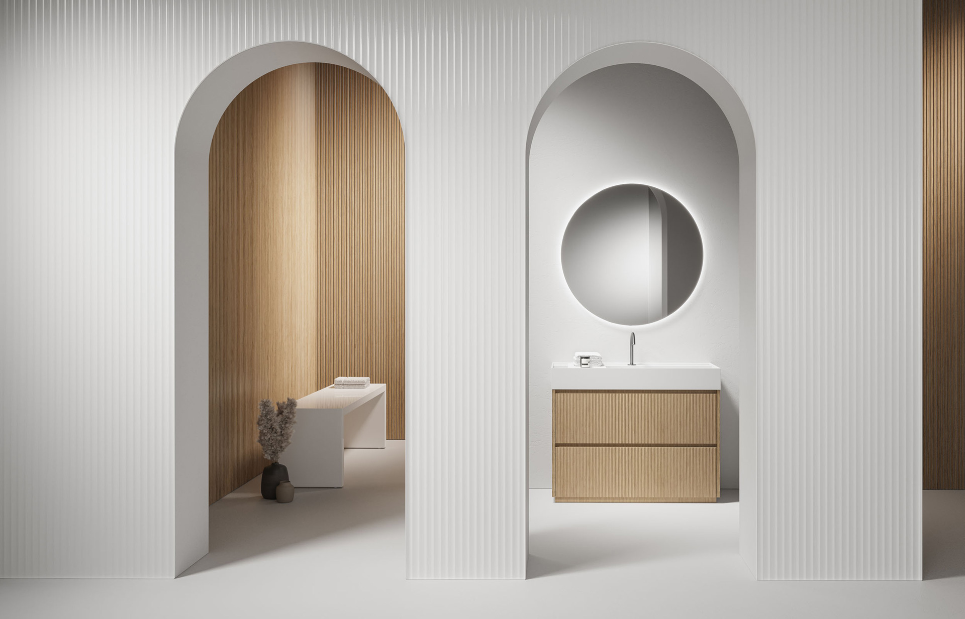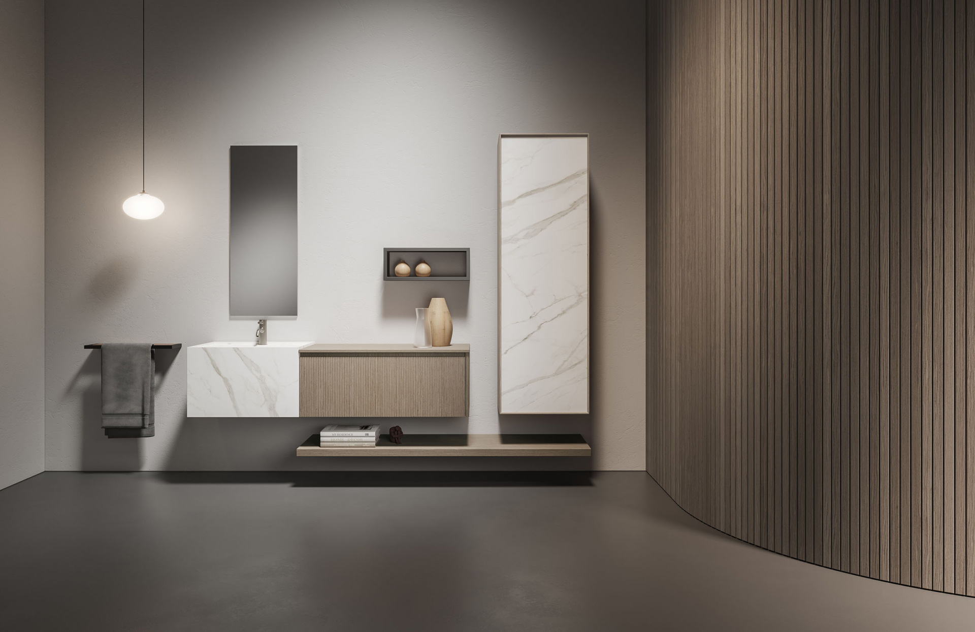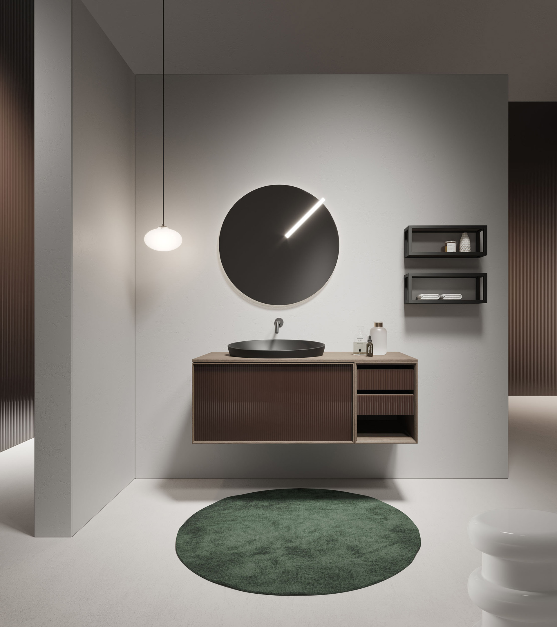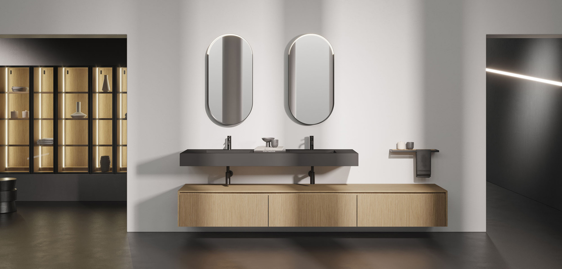 La luce ha sempre avuto un significato simbolico e filosofico, rappresentando la fonte dell’illuminazione fisica e metafisica e simboleggiando l’etere, il quinto elemento che circonda tutti i corpi. La nuova collezione di Mobiltesino va oltre la luce come conoscenza e offre qualcosa di superiore e trascendente. Superluce è un viaggio attraverso un labirinto di spazi che interpretano la meticolosa ricerca per la qualità dei materiali migliori e delle finiture migliori. La luce zenitale illumina questa architettura in maniera uniforme, sono le pareti e le contropareti che lo organizzano a disegnarne ombre, prospettive e punti di vista sempre diversi. Le ambientazioni non cercano di simulare un ambiente domestico con uno stile preimpostato, ma uno spazio semplice, minimale in cui il cliente possa interpretare il mobile che vede, nello spazio che ha. Sfogliare il catalogo della nuova collezione di Mobiltesino diventa come un’esperienza all’interno di un labirinto, riemergono pareti, dettagli di altri ambienti che abbiamo già sfogliato, così da far calare il lettore in uno scenario già vissuto e non distante o irraggiungibile e dove la luce è motore e guida di questo viaggio.