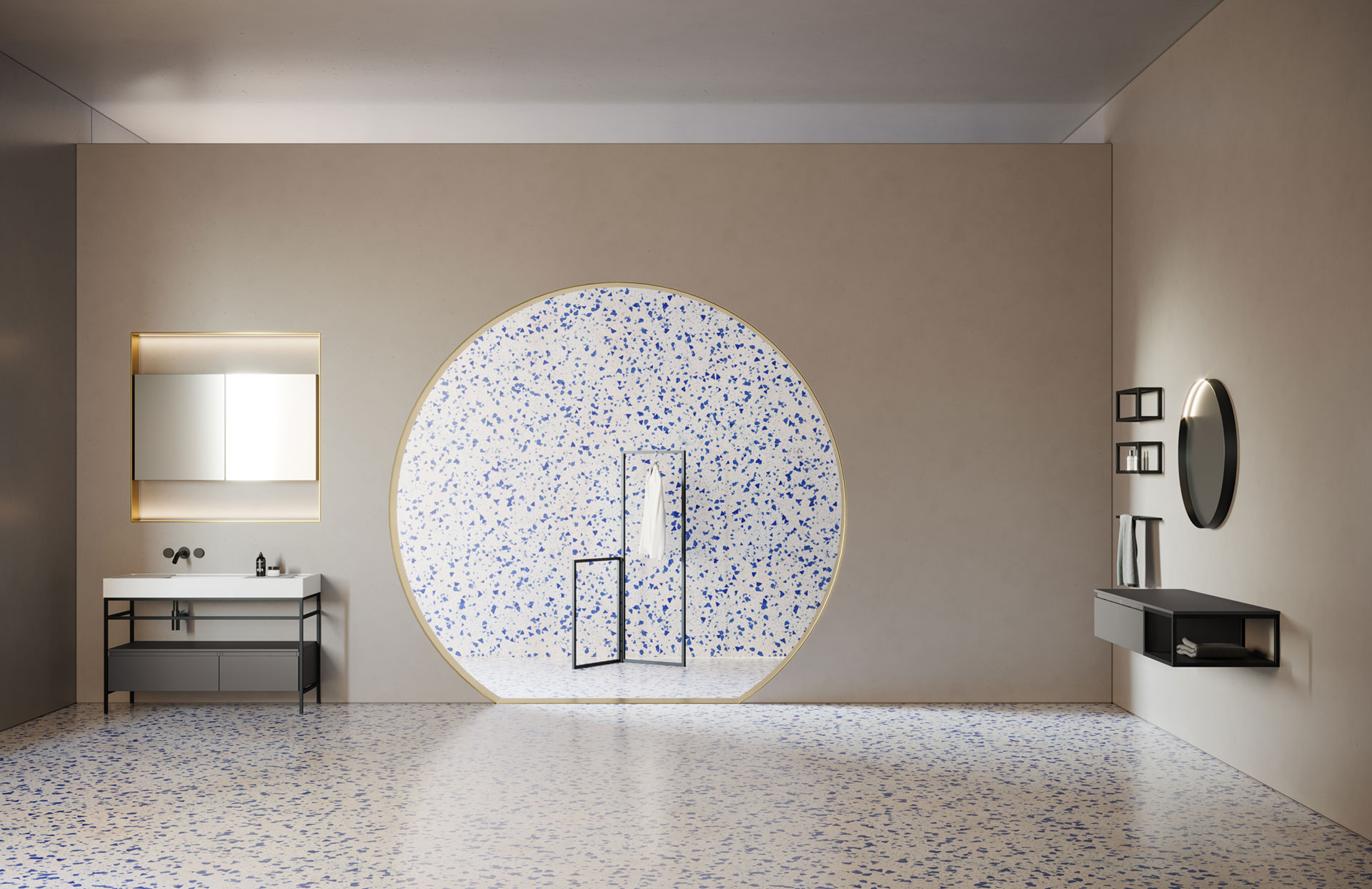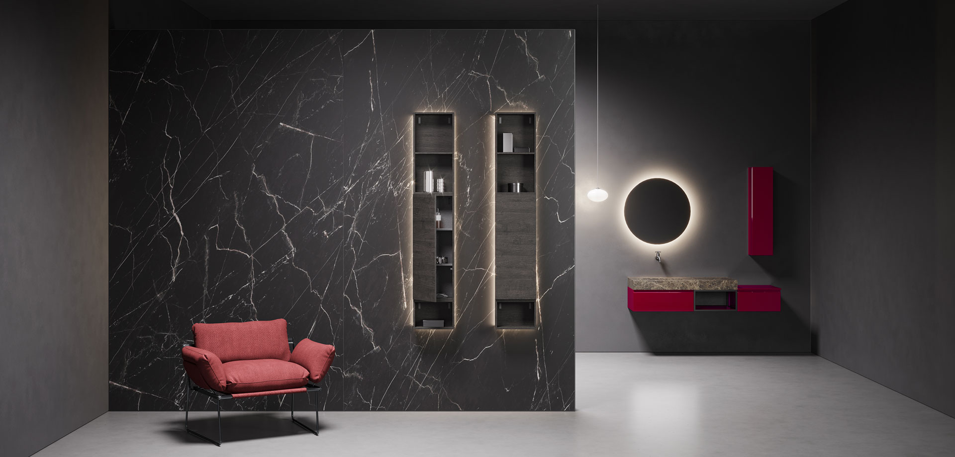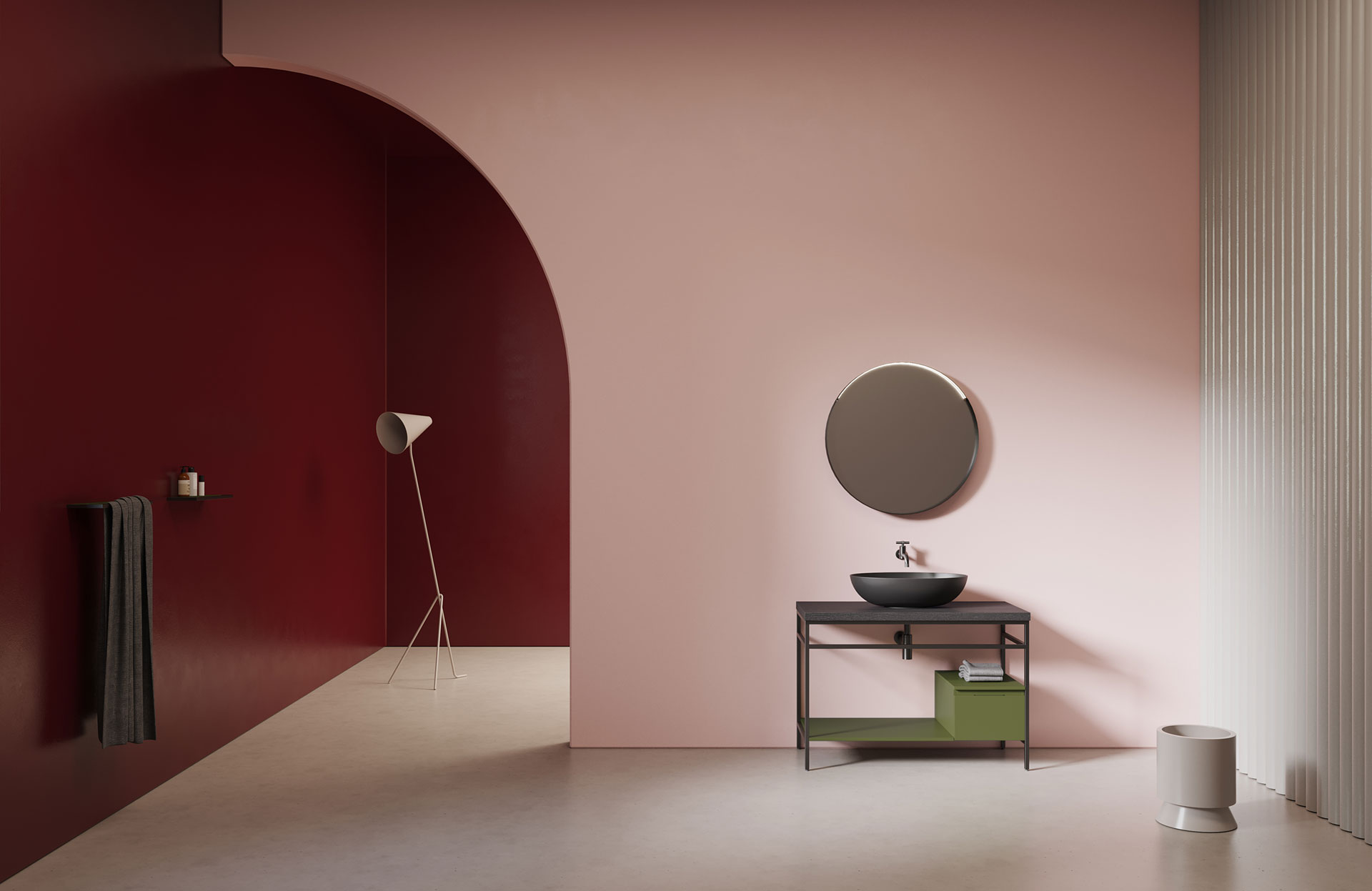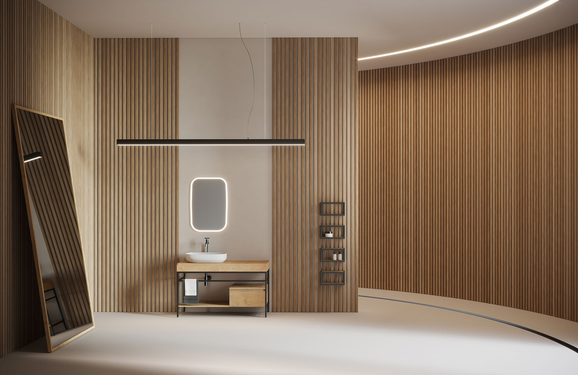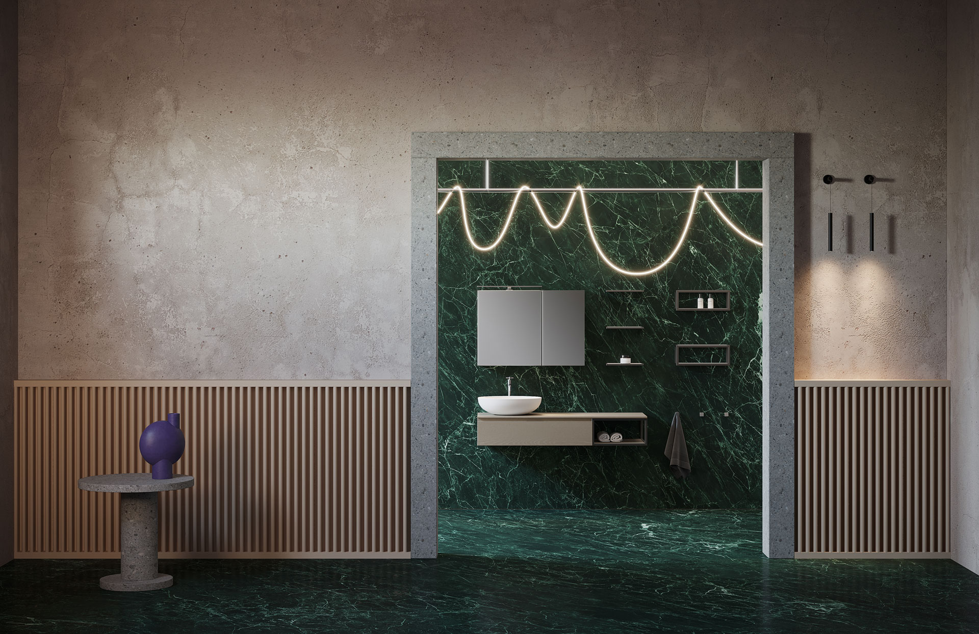 Architetture importanti, con pochi ed essenziali elementi dalla qualità estrema, accoglie e concretizza l’eterea estetica dell’ambiente bagno costruito intorno a URBAN+.